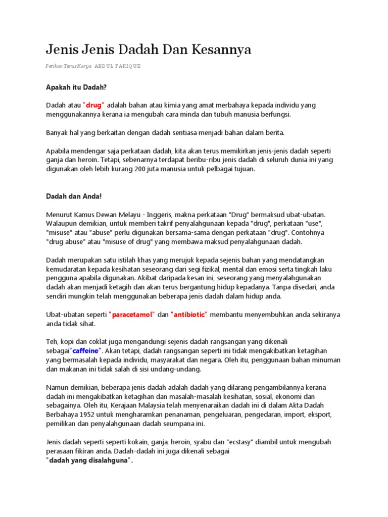 Jenis Jenis Dadah Dan Kesannya Pdf